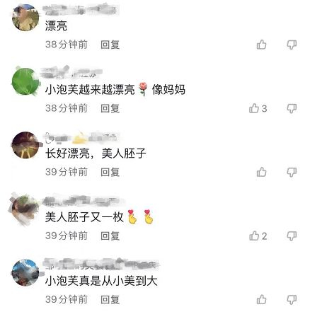 看完刘畊宏晒出的小泡芙近照后,网友纷纷留言夸赞:“小泡芙长大了,还是那么可爱”“小泡芙出落得越来越漂亮了”“小泡芙真是从小美到大”“长好漂亮,美人胚子”。