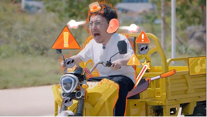 黄渤自信满满的开着三蹦子,却径直的把气球给扎破了,险些令节目组现场为黄渤改规则。