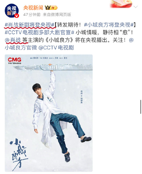 肖战主演的医疗剧《小城良方》正式官宣登陆央视,成为2026年总台重点剧集,引发全网热议。